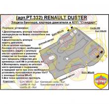 RENAULT DUSTER (сталь, 2015-...) - Стандартная защита переднего бампера, картера двигателя и КПП